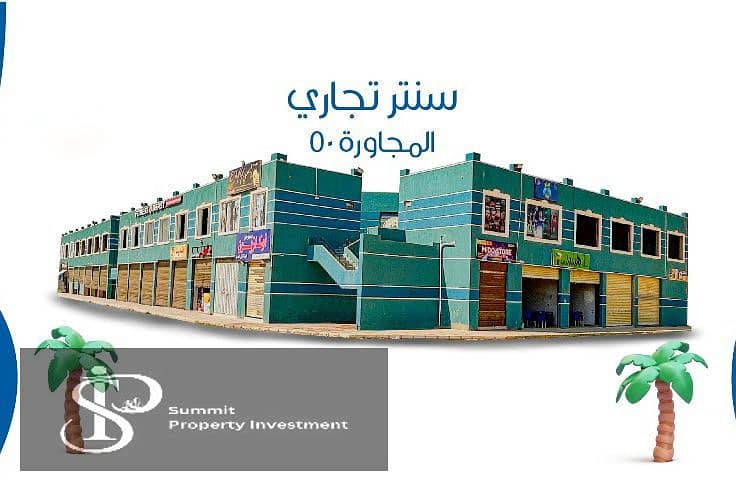 Commercial shop for sale, adjacent to 50, directly from the owner, with an area of 21 meters in front and a private external space in the midst of high population density, at a very special price, registered with the City Authority of El 10th of Ramadan, in front of Al Salmiya.