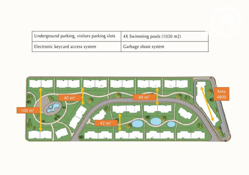 نادي اجتماعي بمساحة 8,400 متر مربع.