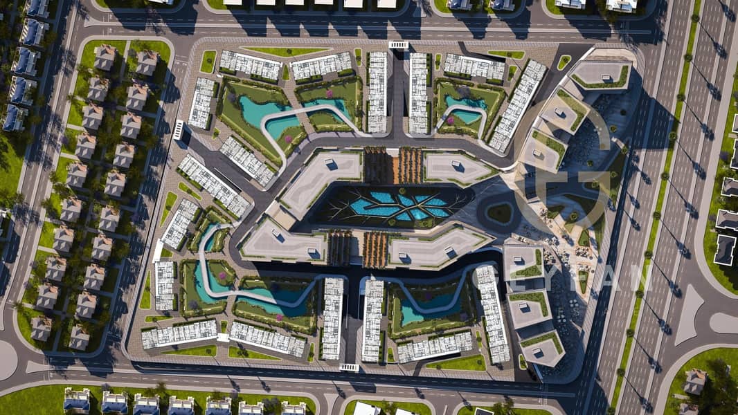 A 3-bedroom apartment on a typical floor located in the heart of Golden Square, within KIN Compound, in a fully inhabited area in El Qornfol Villas. I