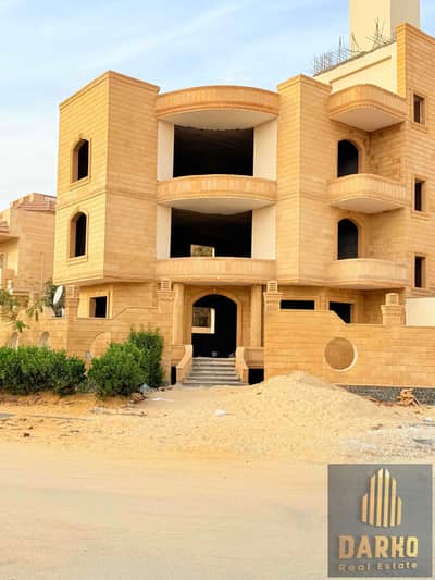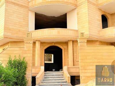 Villa West Sumed 6 October, corner view, landscape, fully built, separate floors next to Misr University and Mall of Arabia, at an unrepeatable price, corner view, 4 units excluding the basement, open corner, newly finished facades, Hashemite stone, at a