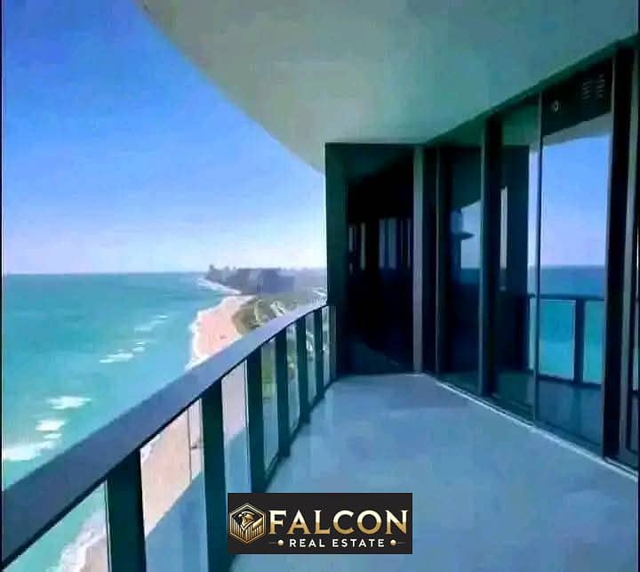 Receive immediately an apartment at half its price in the first skyscraper on the sea in the North Coast, hotel-style finishing with air conditioning