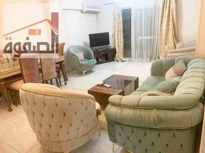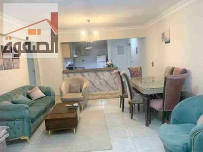 Furnished apartment for rent in Baron City compound, Maadi ring road next to Al-Said Club and Sema Towers, and the ring road is close to Carrefour. A distinguished and upscale location with security, surveillance cameras, and gates. All services available including a Mini Carrefour, trees, and gardens. Comprising of 3 rooms and a reception on the fifth floor with an elevator and air conditioning.