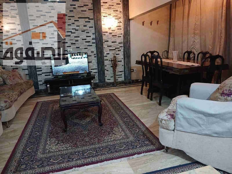 For rent: a furnished apartment consisting of 3 rooms, a reception, a bathroom, and a kitchen. Ground floor of the company’s buildings. A very upscale and quiet location, close to all services, near Carrefour Express and Algeria Street, near the expressway and ring road. About 15 minutes from Maadi Metro. One air-conditioned room. The apartment overlooks trees and gardens. It has ground internet and natural gas. The apartment is very cool and does not require air conditioning.