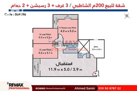 Apartment for sale 200 m Shatby (Port Said Street - Brand Building), 6,750,000 EGP cash. Agent: Ahmed Samir