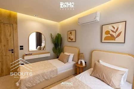 Chalet for sale, 114 m², fully finished, Ultra Lux, with a direct sea view and immediate delivery in Boho Village, a prime location next to Al Galala