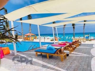 A distinctive chalet with a roof, ready for immediate delivery, fully finished, with a sea view, in Kali Coast, Ras El Hekma, on the North Coast