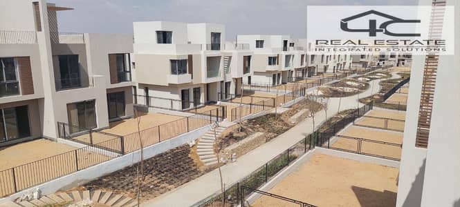 The lowest price for a twin house villa in SODIC East Compound, with an area of 245 square meters, the best design, a very distinctive view, and immediate delivery.
