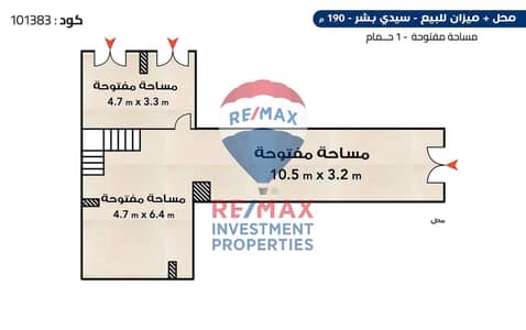 Commercial shop + weighing area for rent, 190 m² - Mohamed Naguib (steps from the sea)