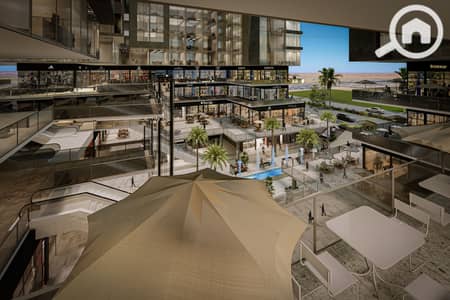 The mall is directly on the central axis with a façade of 90 meters in front of the monorail
