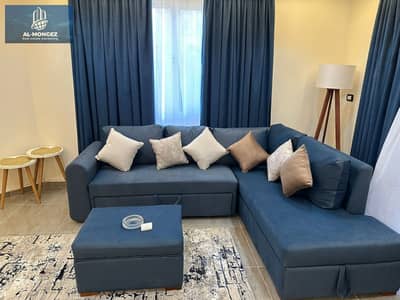 A furnished apartment for rent in Al-Rehab, super lux, 90 meters directly in front of Gate Way, ground floor with garden view, first occupancy.