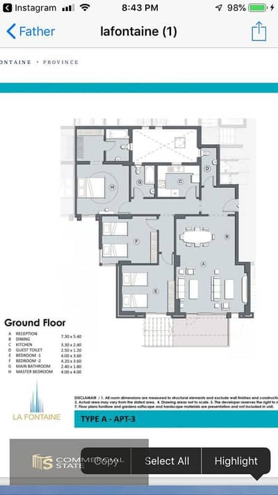 Apartment at La Fountaine Coompound for Sale-Private Garden-New Cairo