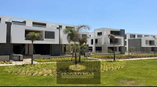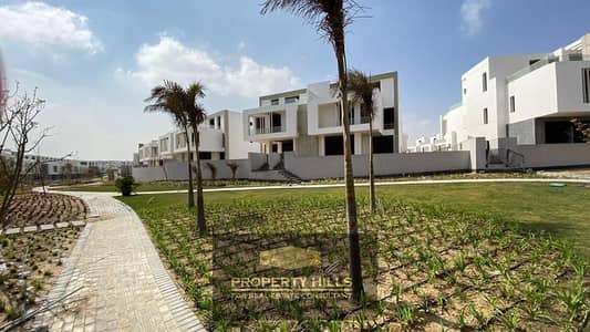 At an attractive price, a townhouse villa with 6 rooms and a swimming pool, overlooking a landscaped view next to Giza Plateau, in front of New Giza.