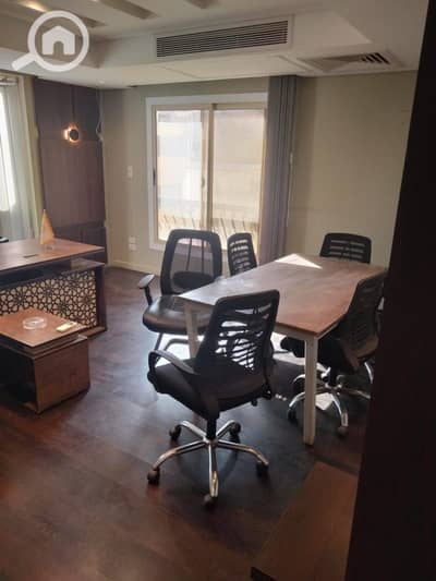 Office 250 sqm super lux, air-conditioned and furnished with luxury furniture, administrative license, first floor consisting of 3 rooms, 2 receptions, and 2 bathrooms, including a master bathroom. Rent 60,000 EGP, near Club Al-Sayd. No intermediaries, please.