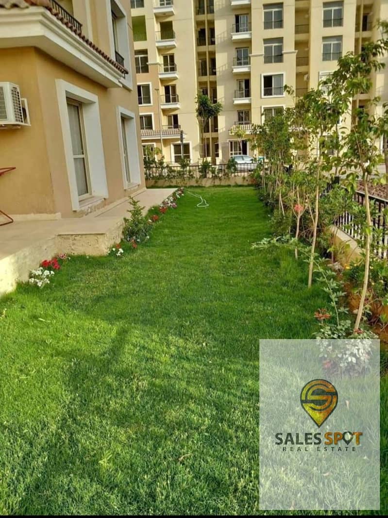 **Ground-floor Studio with a Private Garden — Hot Deal at Half the Price In Sarai Compound, in front of El Shorouk. **