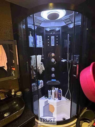 Apartment for sale, three rooms, two bathrooms, large kitchen, reception with two pieces, all furniture is modern and appliances are modern, view of the Hunting Club, all rooms and the reception overlook the view.