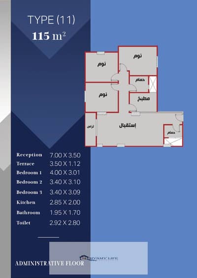 Consisting of 3 bedrooms + 2 bathrooms + large kitchen + reception with two large parts and a balcony.
