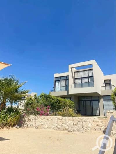 Chalet with garden on lagoon, with 10-year installments, in Azha Ras El Hekma, North Coast, fully finished with Ac's and a kitchen.