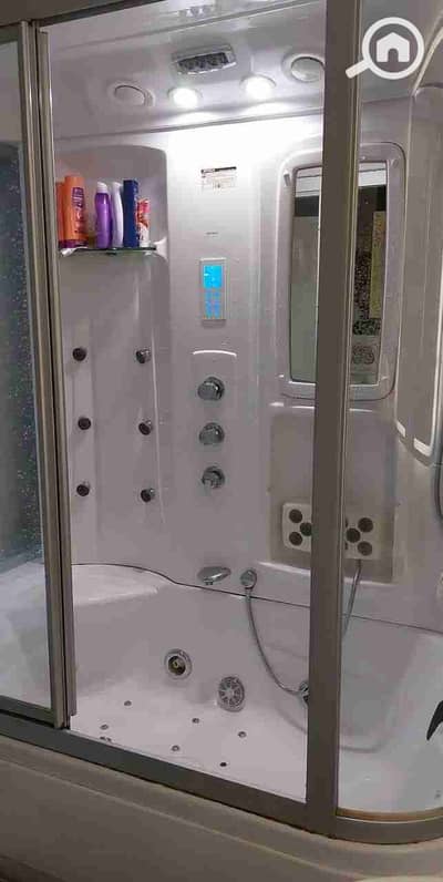 The first floor is 150 meters and consists of one bathroom with a jacuzzi, two rooms; the first is air-conditioned with 3 horsepower and the other room is 1.5 horsepower, a large reception area, and a kitchen.