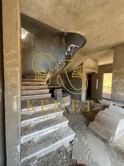 A very special twin house available for immediate delivery in a residential compound, ground floor, first floor, and roof, semi-finished at a special price.