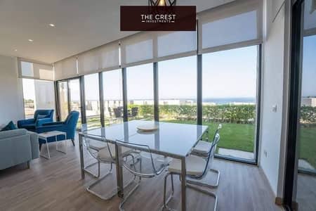 Panoramic sea view from the ground floor, luxurious finishing corner townhouse villa with private pool for sale minutes from Amwaj and Hacienda