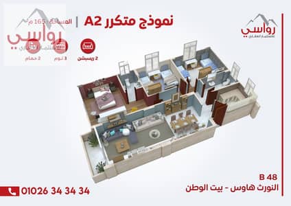 165 sqm apartment, immediate delivery in North House, Beit Al-Watan, Fifth Settlement, steps from Suez Road with payment facilities.