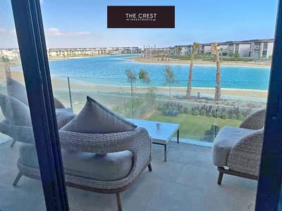 panoramic crystal lagoon view fully finished chalet with private garden for sale mins from mountain view and swan lake and hacienda