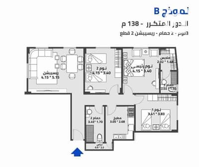 Apartment for sale, 138 square meters, Fifth Settlement, Beit Al Watan, with installments over 66 months