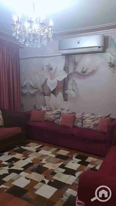 Furnished apartment for rent in Zahraa El Maadi, Al Mirag Al Olawy, behind Carrefour City Center and close to Royal Hospital and Emirates Gas Station in a quiet and upscale location. It consists of three bedrooms, a bathroom, a kitchen, a reception area, and a balcony overlooking the street. It has all electrical appliances including a dishwasher and air conditioning, with ground internet, Wi-Fi, and natural gas.