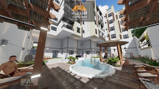 Own a 70 sqm apartment with 10 sqm private garden overlooking the pool in Old Kawther, fully finished.