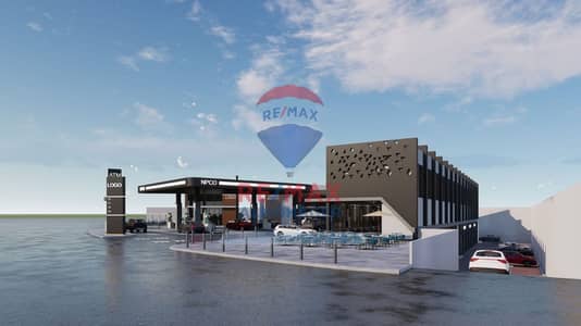 Gas station land for sale in Sheikh Zayed The gas station has a 15% built-up area, with a basement and two duplexes. The construction period is 3 year