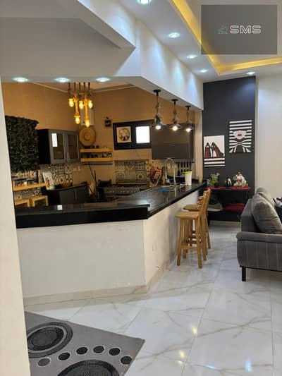 Spacious furnished roof apartment for rent in a prime villas area, Third District, Fifth Settlement – next to Fatma El Sharbatly Mosque. Featuring ultra-super luxe finishing and modern furniture.
