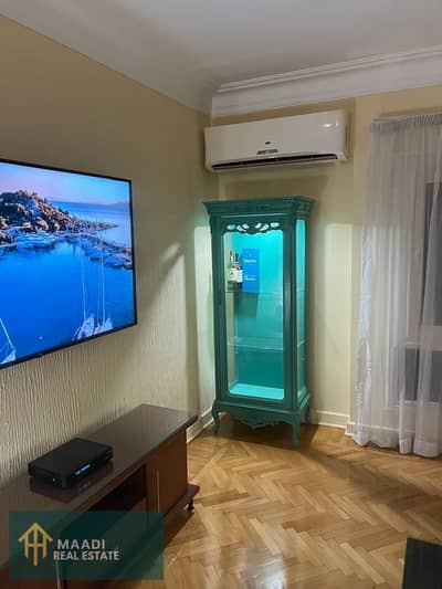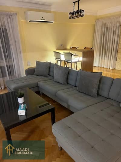 Furnished apartment for rent in Sarayat Maadi, super deluxe, 4 rooms, 3 bathrooms, one of which has a Jacuzzi