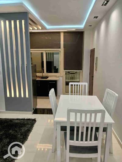 Furnished studio with hotel furniture, internet, and natural gas. The location is Al-Miraj, one minute to Carrefour, fifth floor, not the last. It has internet and is very close to all services. Monthly rent is 20,000.