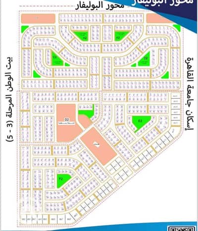 Baufer commercial land for sale west of Cairo University, Phase 8, on the edge of the C-D axis, area of 500 square meters.