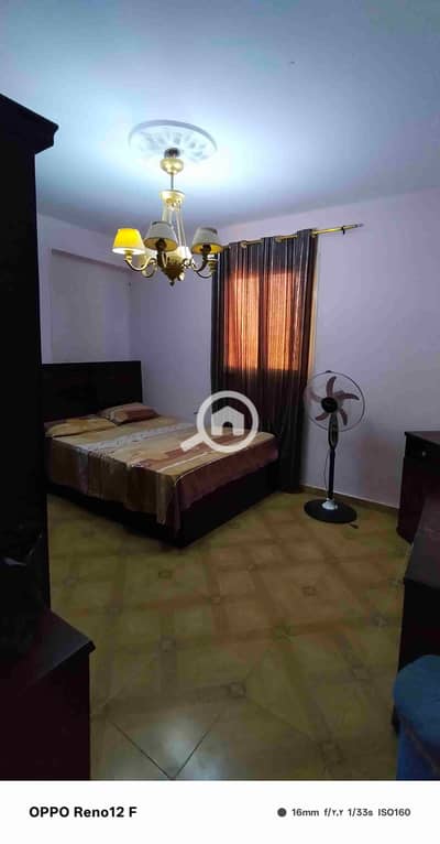 Furnished apartment for rent in Maadi consisting of 3 bedrooms, a reception, a bathroom, and a kitchen.