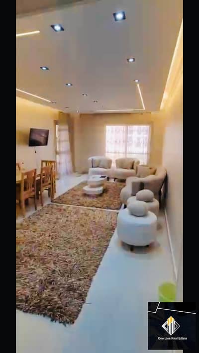 130 square meter apartment, 3 air-conditioned rooms, 2 bathrooms, and a reception area with 2 sections and 2 balconies, ultra-super-lux finishing. First occupancy. First upper balcony in a very prime location. The furniture is new, first use, and the electrical appliances and stove are new, first use.