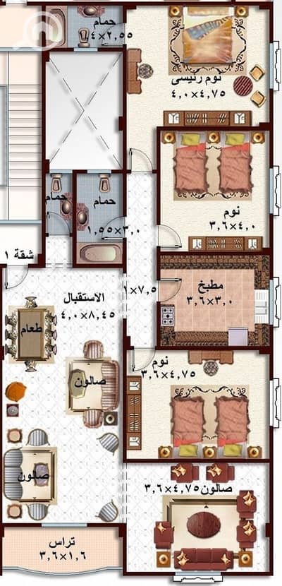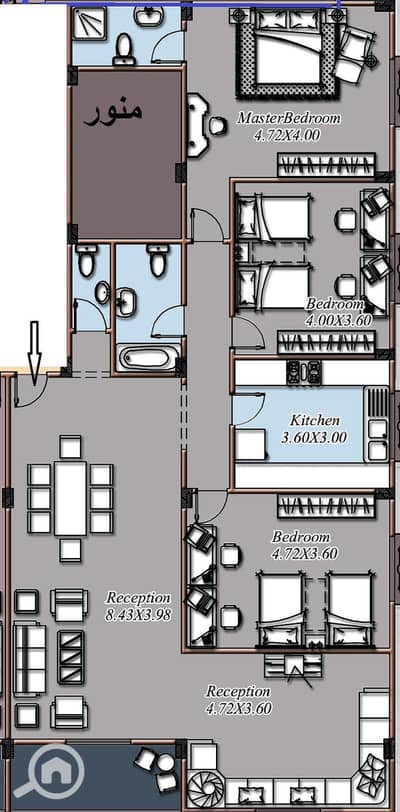 Apartment 196 m in the fourth district, fourth floor buildings, front sea view, semi-finished, ready to use, steps from Al-Horreya Street and the tour
