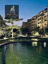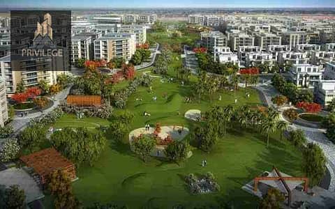 Apartment for sale in the Sarai Compound, Phase Eilan, 131 square meters (two bedrooms) + 200m garden with an open view of the landscaping and a swimming pool, prime location next to Madinaty and Mostaqbal City, and 8 minutes to the Golden Square and the American University and Fifth Settlement.