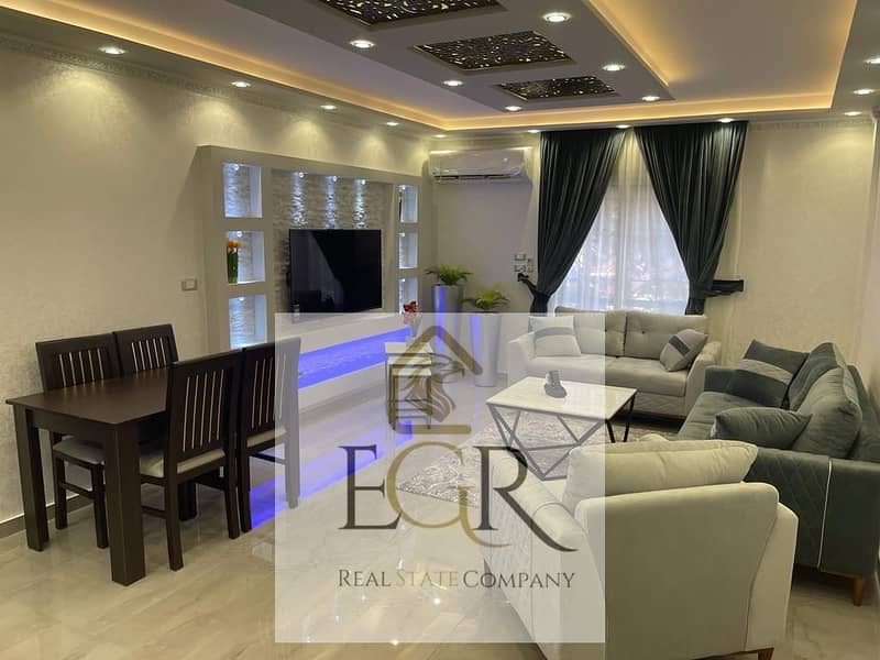 Furnished apartment for rent in Al-Rehab with hotel-style finishing and furniture, directly next to services and the market.