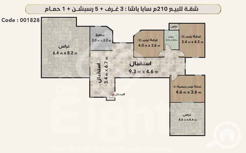 Roof apartment for sale, 210 m, Saba Pasha (behind the Russian Embassy) Price: 4,500,000 EGP cash - Agent: Islam Mohamed: