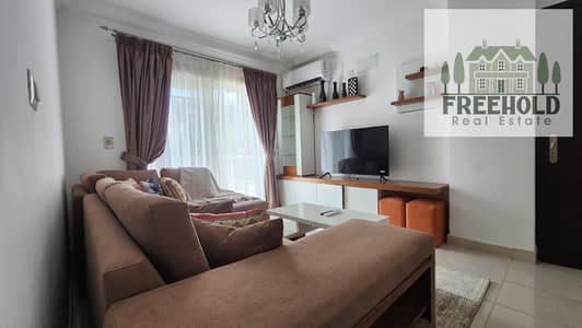 Furnished ground floor apartment for rent in Madinaty B10, 74 sqm with a 50 sqm garden, 2 bedrooms, 1 bathroom, kitchen and reception, air-conditioned except for one room, modern furniture, in front of the First Season Park, minutes from services, 1 month security deposit and 1 month advance payment.
