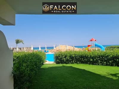 On the sea, a fully finished chalet with a garden, a fully serviced village, SEA VIEW, in Blue Blue, Ain Sokhna, next to Porto