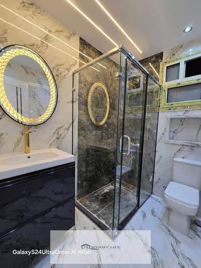 Apartment for sale in Hadayek El Ahram, 130 square meters, with a backyard garden, located on the main Al-Khazan street. Finished with ultra super lux specifications at the highest level, consisting of: (3 rooms - 2 bathrooms - reception - American kitchen) in the area S on the main Al-Khazan street.
