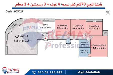 Apartment for sale, 270 m, Kafr Abdo (steps from Saint Jenny Square) - 9,200,000 EGP cash - Agent: Aya Abdullah
