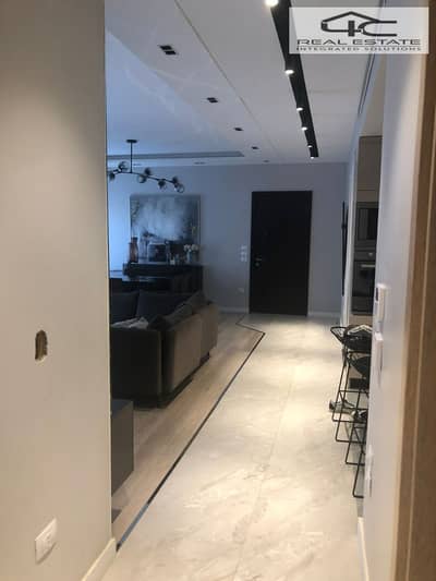 Apartment with garden for rent ultra lux finishing fully furnished with appliances and Acs prime location view lake in Eastown Sodic Fifth Settlement
