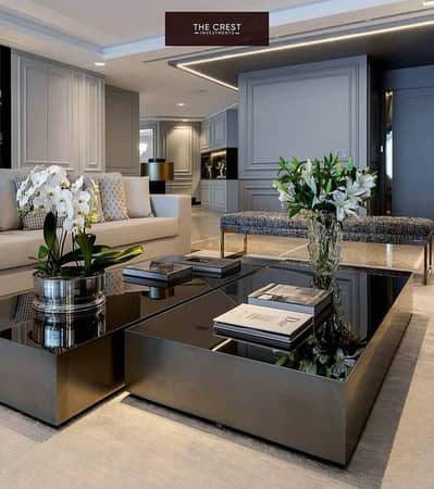 3-bedroom apartment for sale in Taj City Compound with a discount of up to 50% on the center park, with a distinctive view.