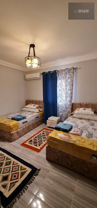 Luxury furnished apartment for rent in the upscale Sun City Compound, New Cairo. The unit is located on an elevated ground floor and features high-end finishing and premium furniture. It includes 3 bedrooms (one master), 2 bathrooms, a spacious reception area, and a fully equipped kitchen. All rooms and the reception are fitted with Sharp air conditioners (hot & cold). Appliances include a large Sharp refrigerator, Ariston washer with dryer, Sharp microwave, and a large Samsung 3D Curved Smart TV. The apartment also features Wi-Fi, a landline, and natural gas.