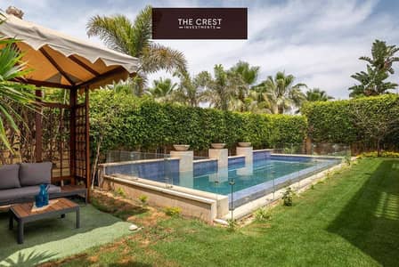 Front view of green spaces villa with private pool for sale minutes from Mountain View Hyde Park and SODIC near Zed East and Katameya Dunes