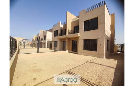 Semi-finished twin house for sale in Alma Compound, Sheikh Zayed. Built-up area: 267 square meters on a 300-square-meter plot, divided into two floors.