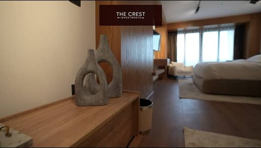 A fully furnished apartment with the best guaranteed return on investment, complete with air conditioning, furniture, and appliances, for sale with luxurious finishes.